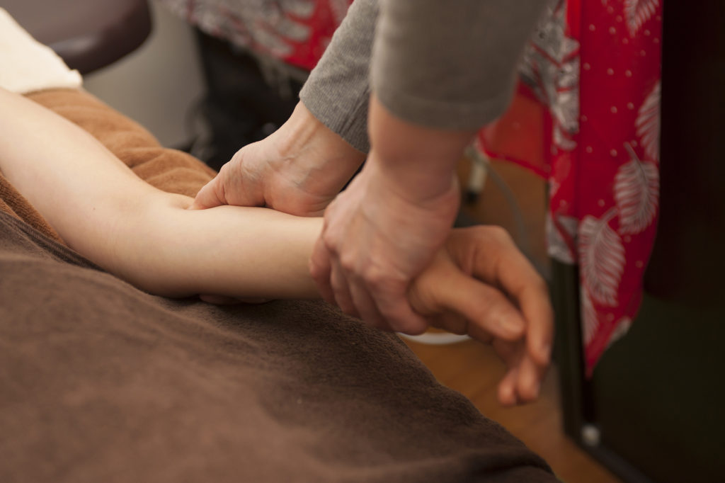 巻き肩の要因であるデコルテ(大胸筋・前鋸筋)上肢、首をアロマオイルを使って筋肉の凝りをリリースします。
